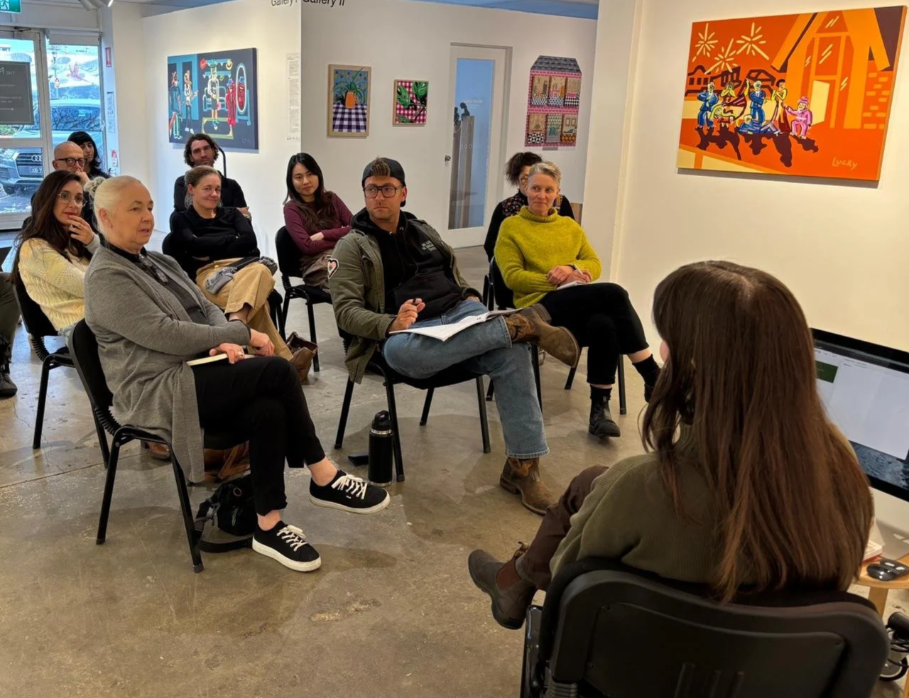 We achieve this through Artist Spotlights, giving studio artists paid opportunities to share their practice and personal experiences with their peers, and Field Trips, taking studio artists on guided tours of local arts organisations and opportunities to network and socialise.
